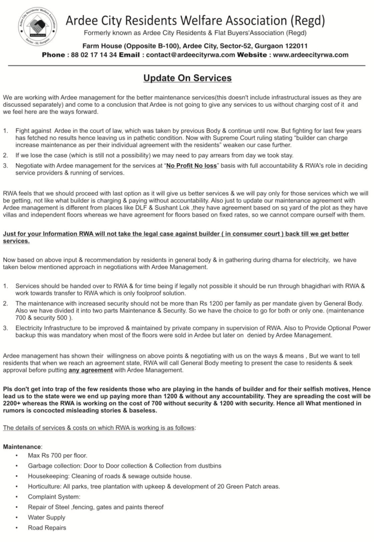 | Audit Report of RWA Accounts for FY 2024-25 on February 19, 2025 by General Secretary |  | Audit Report FY2021-22 as adopted by RWA in its annual general body meeting on January 12, 2025 by General Secretary |  | Audit Report FY2020-21 as adopted by RWA in its annual general body meeting on January 12, 2025 by General Secretary |  | Audit Report FY -2022-23 As adopted by the AGM in its Meeting on January 12, 2025 by General Secretary |  | Circular by RO: 2023 RWA Election Schedule for 60 Collegiums on September 1, 2023 by General Secretary |  | Election Circular by Returning Officer (RO) for RWA Elections on August 28, 2023 by General Secretary |  | Audited Accounts for FY 2018-19 as adopted in General Body Mtg dated 30.8.2020 on October 18, 2021 by General Secretary |  | Audit Report FY 2018-19 as adopted in General Body Mtg dated 30.8.2020 on October 18, 2021 by General Secretary |  | Notification of Governing Body by District Registrar on October 17, 2021 by General Secretary |  | Auditor Report 2019-20 on October 17, 2021 by General Secretary | |